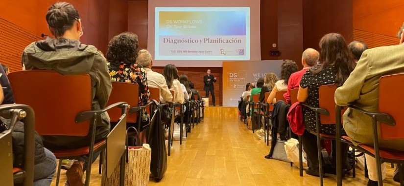 El pasado 27 de mayo de 2022, el Dr. Gonzalo López Castro asistió como ponente al DS Workflows celebrado en el palacio Euskalduna de Bilbao. Se trata de un evento en el que, referentes de la odontología digital exponen las diferentes novedades y avances en este campo. El Dr. López Castro presentó el flujo de trabajo digital que se realiza en la práctica clínica diaria, en una conferencia titutlada ‘Chairside: de principio a fin’.